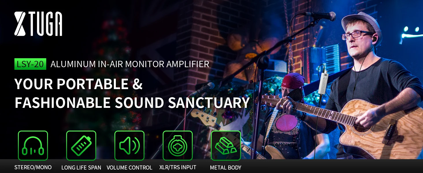 Sistema de monitor intrauditivo portátil: amplificador de auriculares personal XTUGA LSY-20 más liviano que su colección de púas de guitarra, nuestro diseño de luz de plumas cabe en su bolsillo trasero, bolsa para conciertos o estuche para pedales, perfecto para espectáculos, recorridos religiosos y presentaciones en vivo al aire libre.