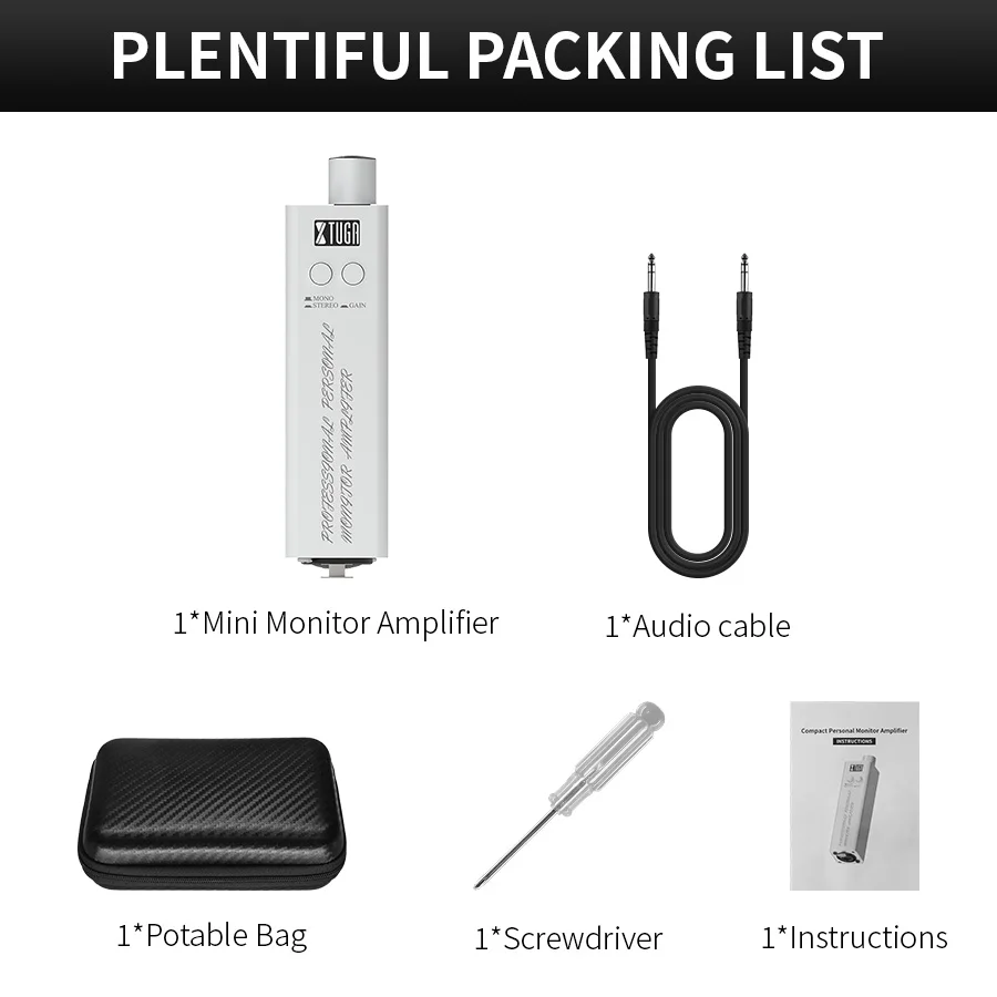 Lo que obtienes: Incluye 1 * bolsa portátil, 1 * mini amplificador de auriculares, 1 * cable, 1 * auriculares con cable, 1 * destornillador.