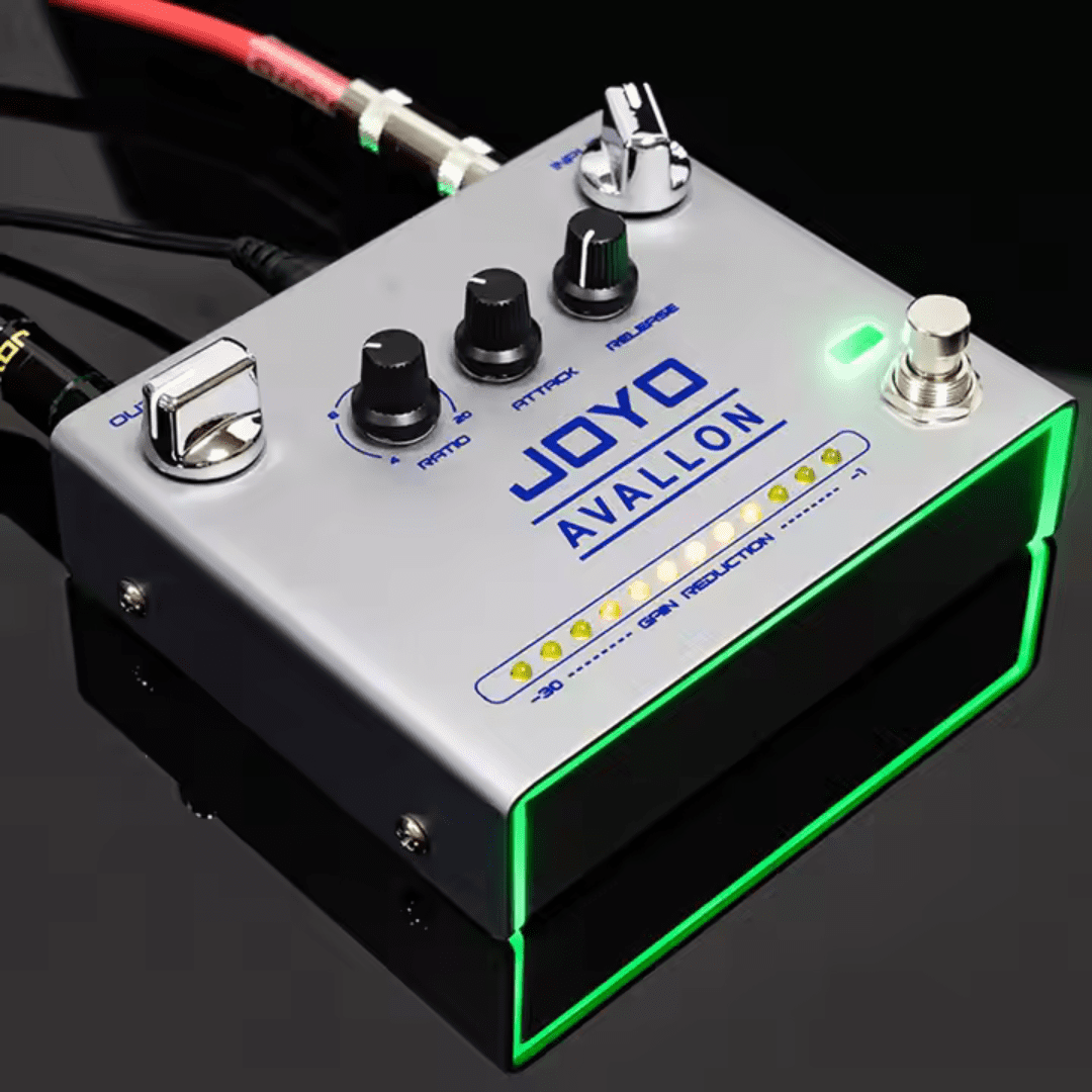 El Joyo Avallon R-19 es un pedal compresor de tipo analógico diseñado para guitarristas y bajistas que requieren precisión y control sobre su dinámica sonora. Pertenece a la serie Revolution de JOYO y cuenta con una robusta carcasa de aleación de aluminio, ideal para uso en escenarios y estudio.