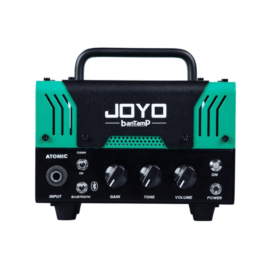 Cabezal híbrido valvular de 20W RMS con sonido británico clásico, ideal para guitarristas que buscan un tono cristalino con buena respuesta para pedales. El Joyo Bantamp ATOMIC es compacto, portátil y con conectividad Bluetooth integrada.