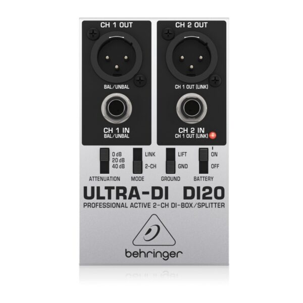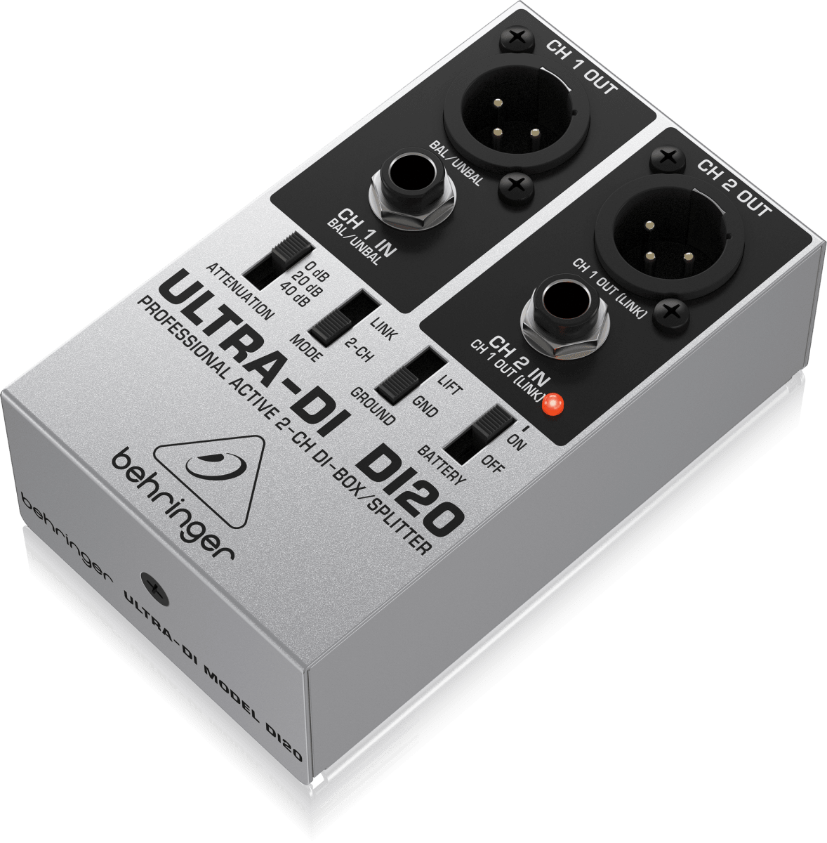 La ULTRA-DI DI20 es una caja DI (Inyección Directa) única en su clase que puede convertir hasta dos líneas TRS de ¼ « no balanceadas separadas en dos salidas XLR balanceadas – o funcionar como divisor de señal. A los guitarristas eléctricos, teclistas y bajistas les encantará la flexibilidad que la increíble DI20 proporciona tanto en el estudio como en el escenario.