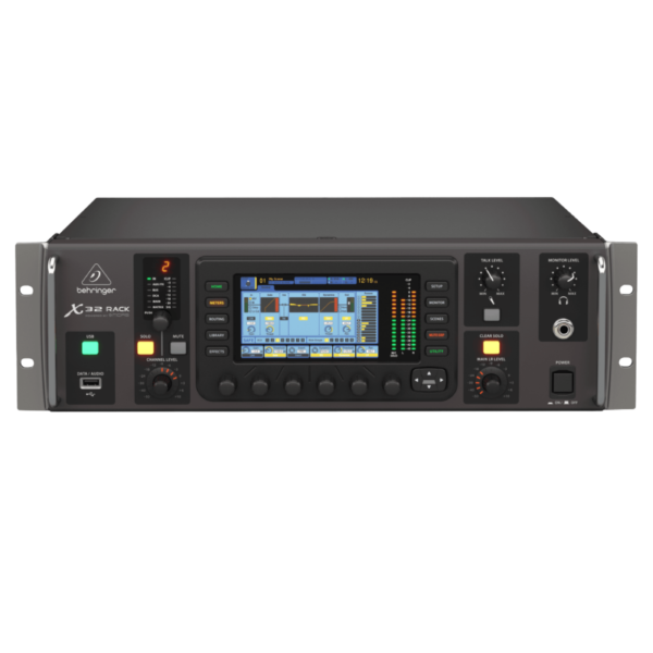 El X32 Rack de Behringer es una poderosa consola digital que combina la robustez de la serie X32 con la portabilidad del formato rack 3U. Diseñada para aplicaciones en vivo, grabación y montaje fijo, esta unidad es perfecta para técnicos exigentes que requieren control remoto, calidad de audio superior y un sistema escalable.