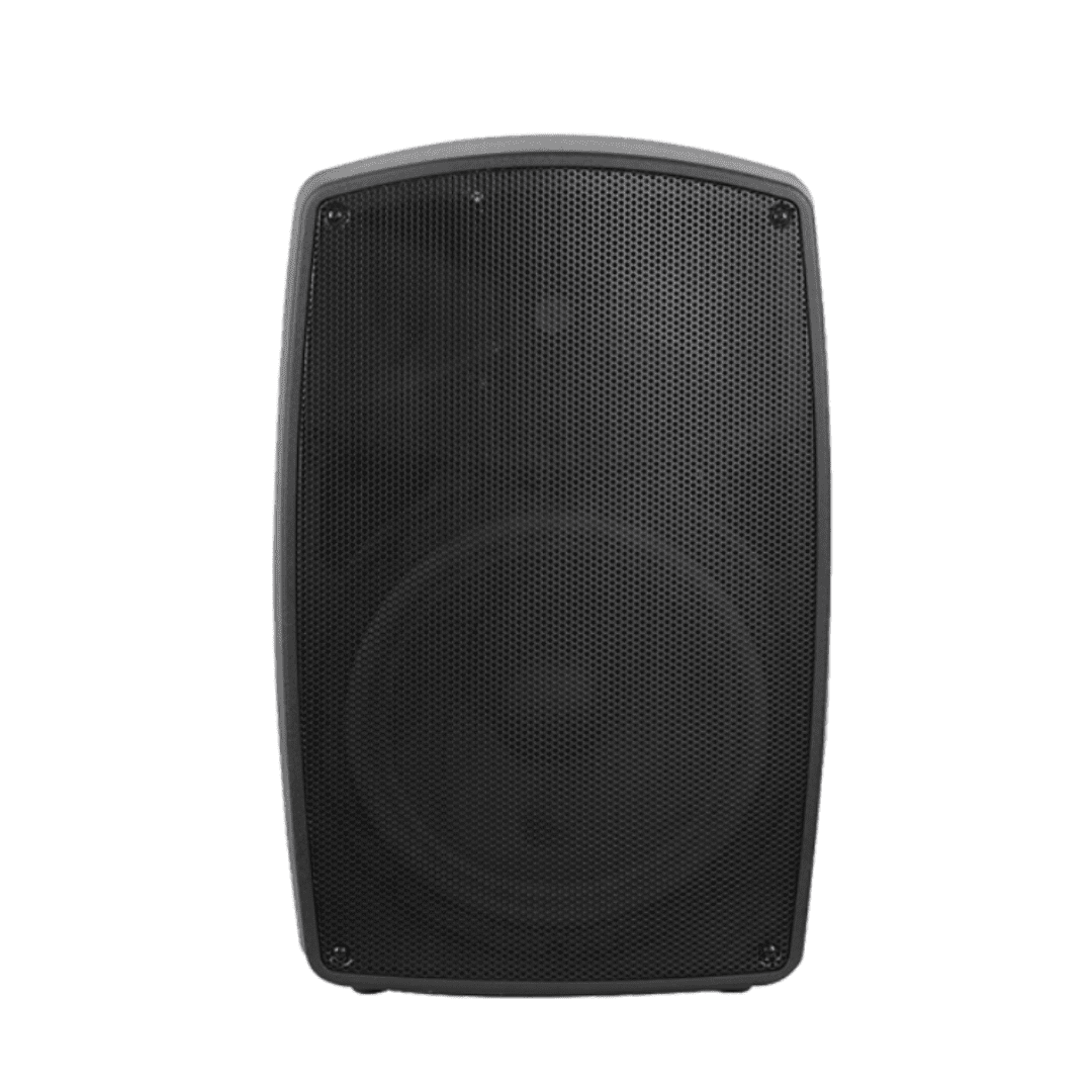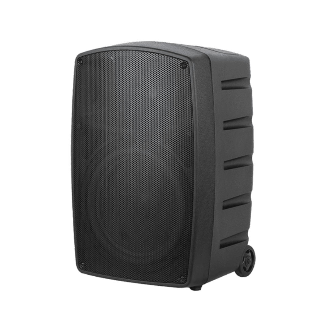 Este parlante portátil activo ofrece 200W RMS de potencia real con fuente SMPS y batería interna de 12V 7Ah que brinda hasta 12 horas de autonomía. Incluye Bluetooth 5.1 con TWS, permitiendo conectar dos parlantes de forma inalámbrica.