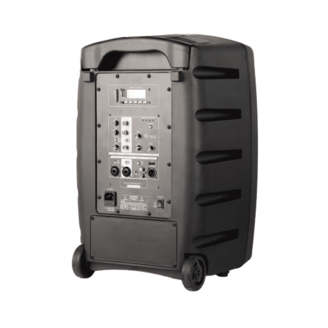Cuenta con DSP integrado con 4 modos predefinidos (Normal, DJ, Live, Speech) para adaptar el sonido a cada situación. Además, integra un mixer de 2 canales con controles independientes de volumen, agudos, graves y reverb, junto a entradas XLR/Line, AUX y salida XLR.