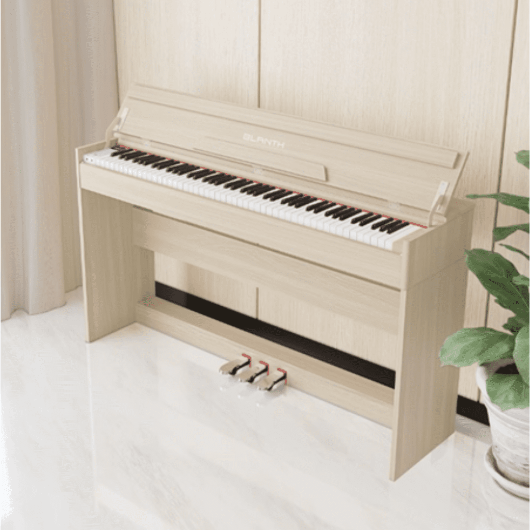 El Piano Digital BLANTH BL-58817 es un instrumento de 88 teclas diseñado para principiantes y aficionados a la música. A menudo se describe como un piano de consola vertical con un diseño de cubierta que se abre a la mitad, lo que le da una apariencia similar a la de un piano acústico tradicional.