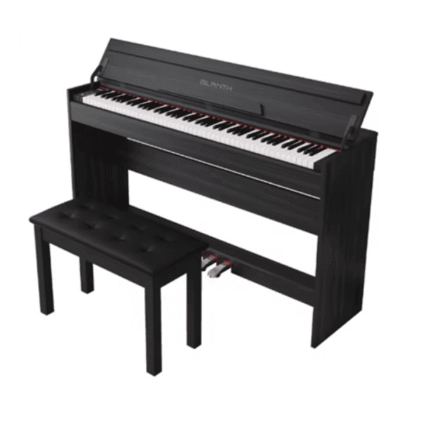 El Piano Digital BLANTH BL-58817 es un instrumento de 88 teclas diseñado para principiantes y aficionados a la música. A menudo se describe como un piano de consola vertical con un diseño de cubierta que se abre a la mitad, lo que le da una apariencia similar a la de un piano acústico tradicional.