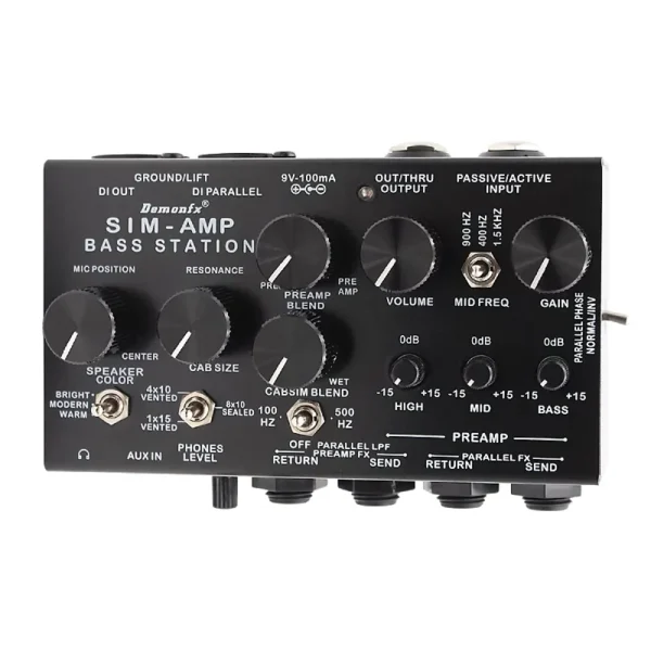 ¡El corazón de tu sonido de bajo directo está aquí! El Demonfx SIM-AMP Simplifier Bass Station es la solución todo-en-uno definitiva para bajistas que buscan potencia, versatilidad y tono profesional, ya sea en vivo o en estudio, sin necesidad de amplificadores voluminosos.