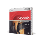 El EJ12, el calibre de bronce 80/20 más grueso de D’Addario, ofrece una tensión más alta que produce un tono acústico más grueso y resonante con una resistencia mayor para rasgueos y flatpicking fuertes.