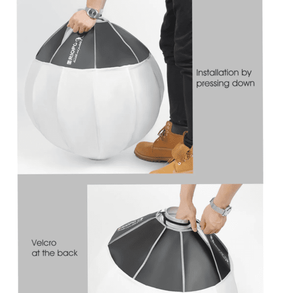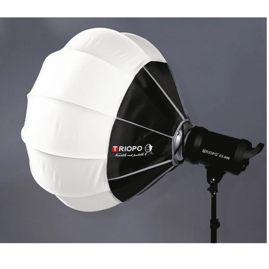 Softbox TRIOPO KQ55 de 55 cm con montura Bowens para estudio es un softbox tipo linterna diseñado para fotografía de estudio y exteriores. Proporciona una iluminación suave y omnidireccional y se desmonta rápidamente para facilitar su montaje y almacenamiento. La montura Bowens estándar garantiza su compatibilidad con numerosos flashes de estudio y dispositivos LED.