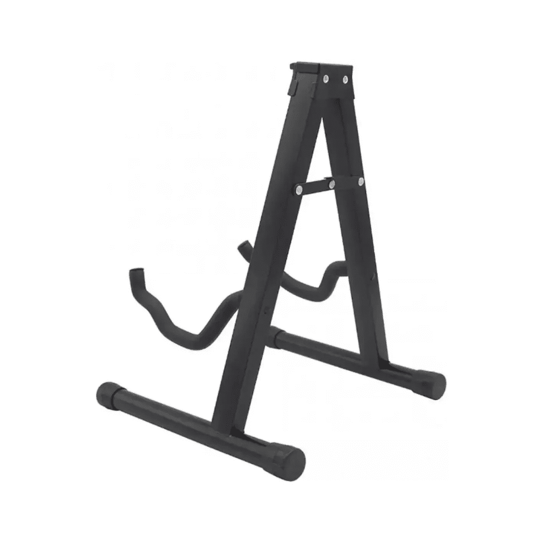 Soporte plegable para guitarra de acero, resistente y estable. Su diseño antideslizante con brazos acolchados protege tu instrumento y permite exhibirlo con estilo. Ligero, portátil y compatible con guitarras acústicas, eléctricas y bajos.