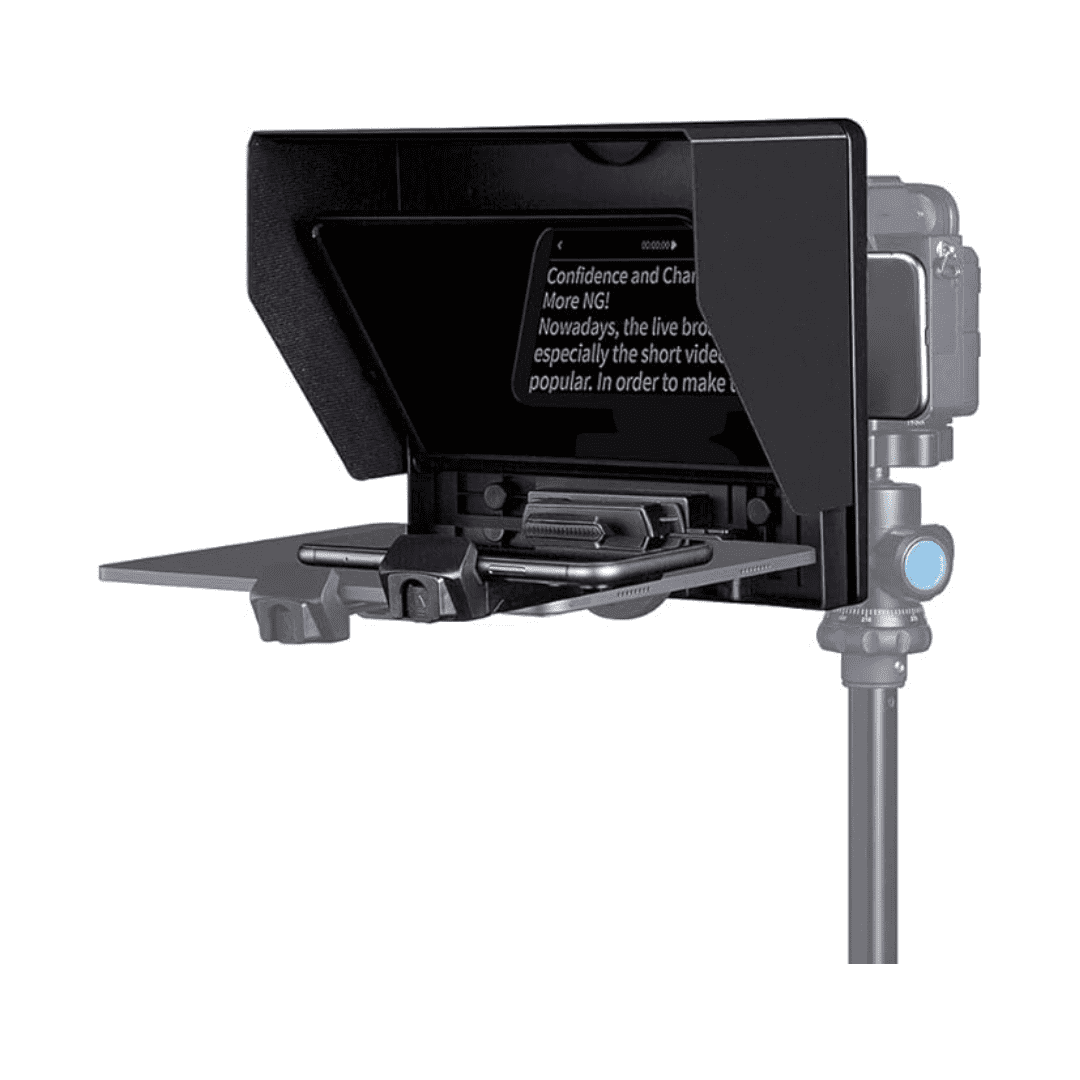 El FeelWorld TP10 es un teleprompter portátil y plegable de 10 pulgadas, ideal para creadores de contenido, presentadores, streamers y producción audiovisual. Compatible con cámaras DSLR, teléfonos y tabletas, ofrece una lectura clara hasta 5 m gracias a su vidrio divisor de haz con transmisión del 97%, sin afectar la calidad de imagen.